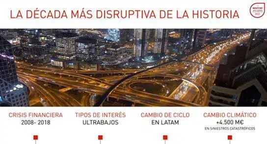 Antonio Huertas hizo un balance de sus diez años al frente de la compañía. Sin lugar a dudas, ésta ha sido una de las décadas más disruptivas de la historia, en la que prácticamente todo lo que conocíamos ha cambiado, generando un entorno muy retador para las empresas y para la sociedad. Tras hacer un repaso de las principales crisis y del efecto que han tenido sobre el negocio – por ejemplo, en los últimos diez años, el Grupo ha registrado más eventos catastróficos de más de 100 millones de euros que a lo largo de su historia, con un coste total cercano a los 4.500 millones de euros-, aseguró que “estamos satisfechos porque hemos podido responder, con solvencia financiera y robustez operativa, a la confianza que los clientes depositan en Mapfre”.