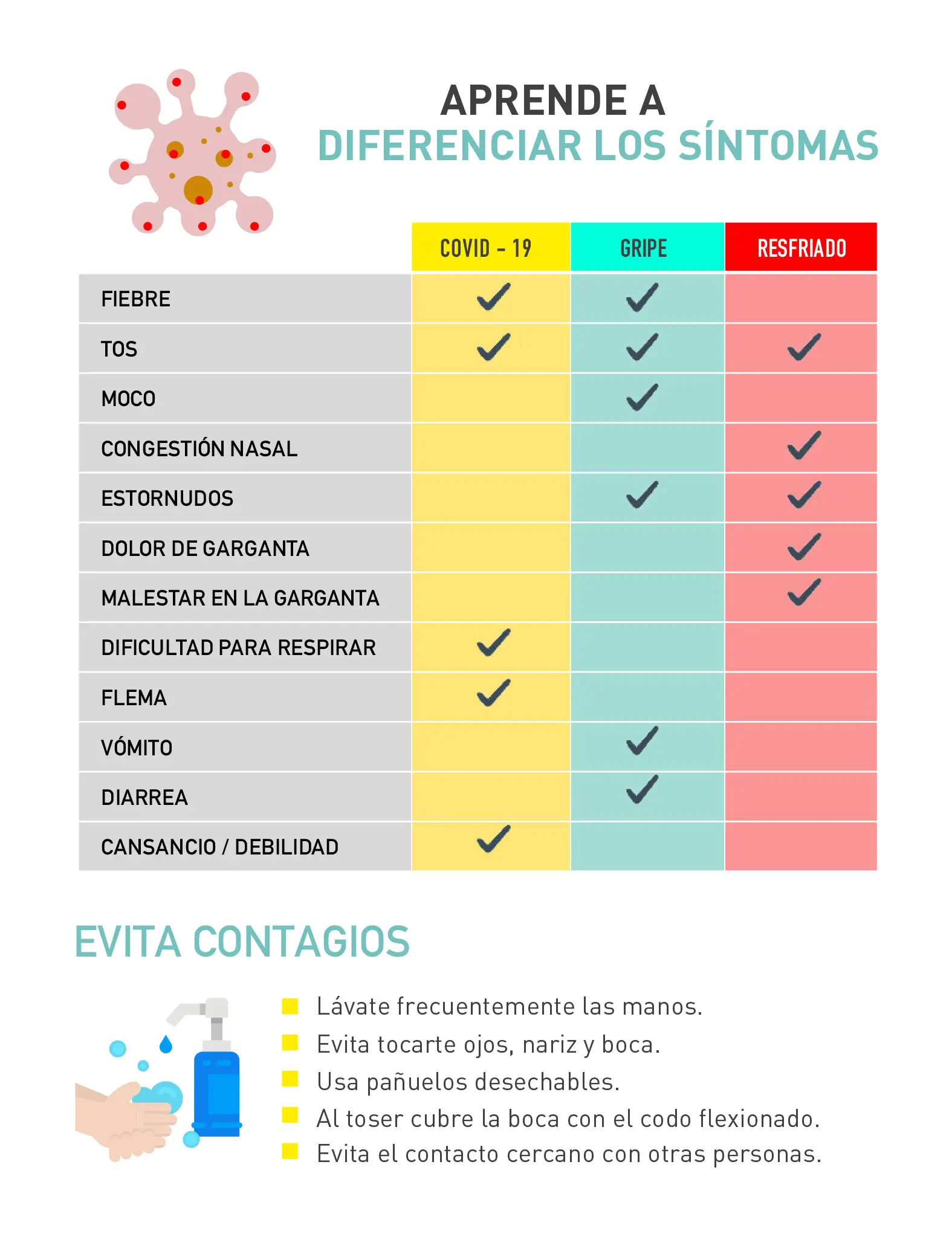 El COVID-19 presenta, sin embargo, diferencias importantes. Por eso, en esta infografía te mostramos claramente los síntomas de cada una de las tres: