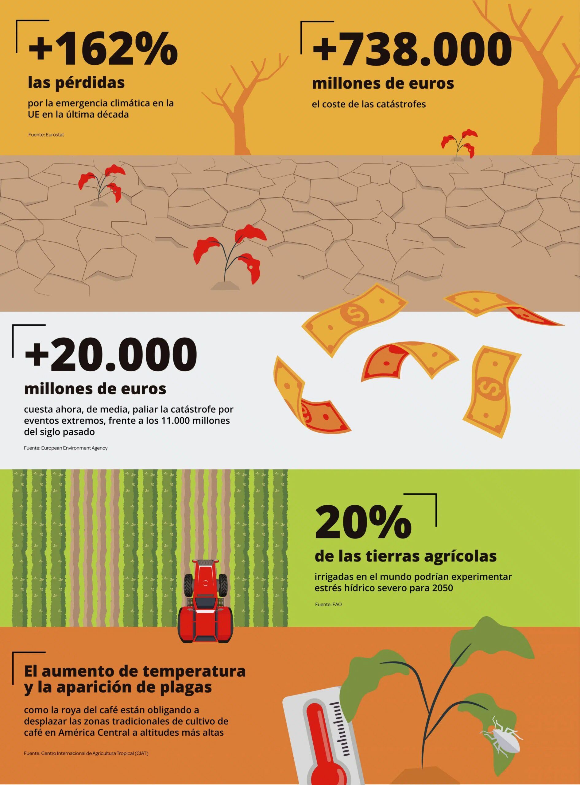 El campo, motor de seguridad alimentaria y sostén de muchas economías locales, está en la primera línea de exposición. En países como España, Italia, Argentina, India o Estados Unidos, los efectos del cambio climático ya se traducen en pérdidas directas para el productor agrícola y ganadero. Un informe de la Organización Meteorológica Mundial (OMM) confirma que el calentamiento global batió todos los récords en 2024 y advierte de que sus efectos serán irreversibles durante siglos. Esto afectará a las grandes producciones industriales, pero también a los pequeños y medianos productores, muchas veces con escasa capacidad de recuperación.