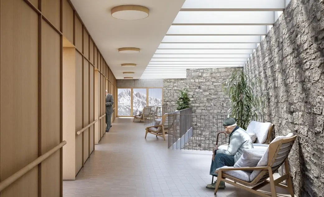 La propuesta ganadora se llama “Un marzo tan agosto” y ha buscado dar luminosidad al centro, que los espacios sean optimistas, cómodos y produzcan alegría de vivir el tiempo que quede por delante.