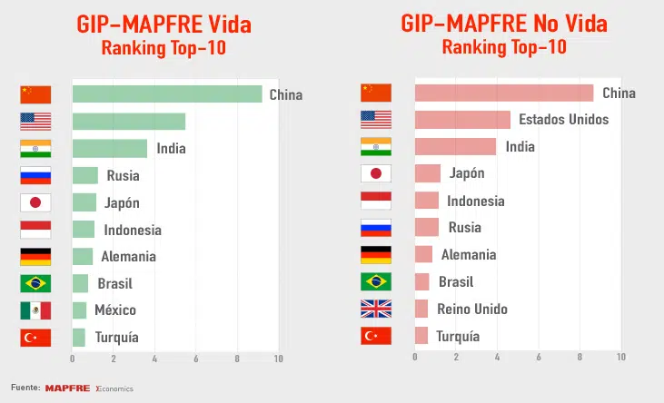 Mapfre Economics, el Servicio de Estudios de Mapfre, ha actualizado su Índice Global de Potencial Asegurador GIP-Mapfre con los últimos datos disponibles correspondientes a 2020. Este indicador, que se calcula para 96 mercados de seguros, tanto desarrollados como emergentes, tiene por objeto medir el espacio asegurable en todo el planeta, mediante la creación de una métrica que sintetiza los mercados que ofrecen un mayor potencial asegurador en el medio y largo plazo. En este sentido, no se producen cambios relevantes respecto al año anterior y China, Estados Unidos e India siguen liderando el ranking de los países con mayor potencial asegurador, tanto en el ramo de Vida como de No Vida.