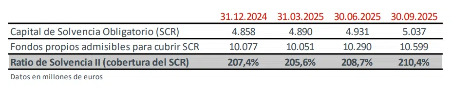 La compañía considera muy confortable la situación de solvencia al estar su ratio por encima del punto medio del rango de 175%-225% fijado por el Consejo de Administración.