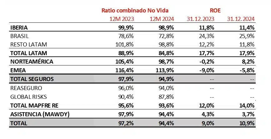 - Turquía reporta un resultado de 28,1 millones de euros (+138,2%), fruto de la fuerte mejora del ratio combinado y una significativa contribución del resultado financiero.