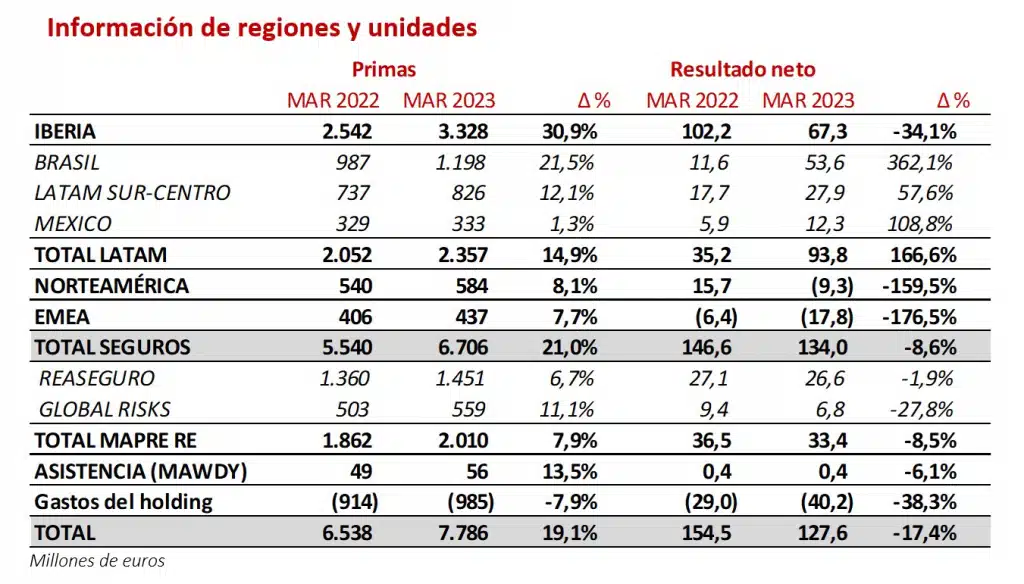 *ADVERTENCIA: Mapfre S.A. (Mapfre) advierte que las cifras que contiene este informe de seguimiento de actividad están presentadas bajo los principios contables vigentes en cada país, homogenizados para permitir la comparación y agregación. Estas cifras no deben considerarse como una indicación de la futura información financiera del primer semestre de 2023 que se presentará conforme a las Normas Internacionales de Información Financiera (NIIF) y en los plazos legales previstos. Para más información, ver Anexo al presente documento.