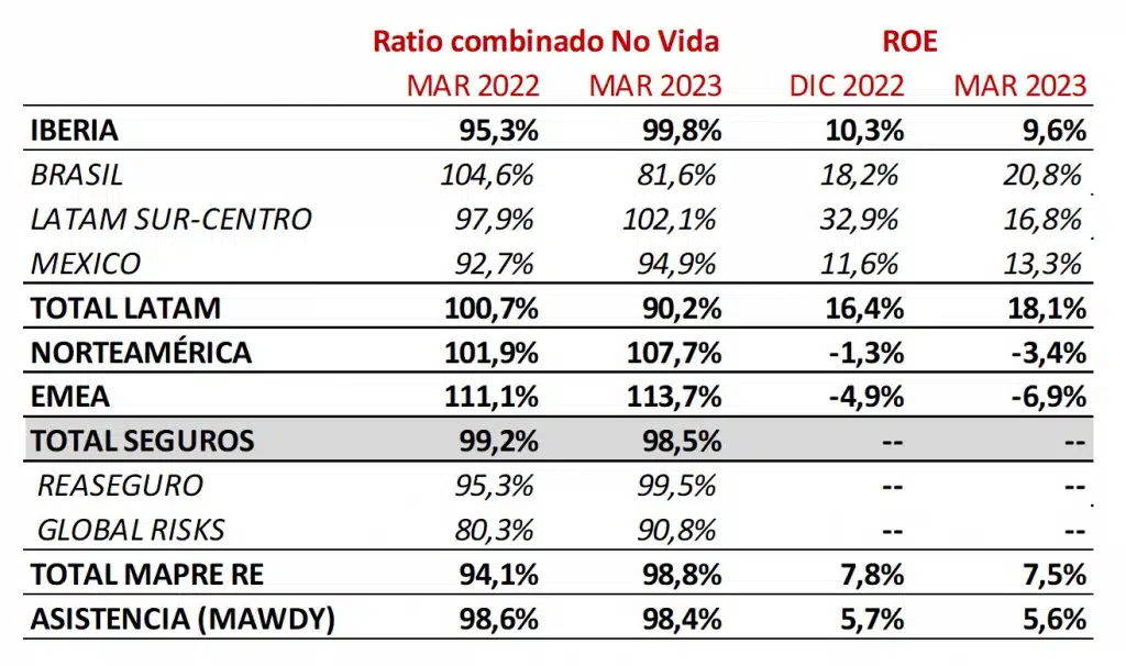 - El ratio combinado en LATAM SUR-CENTRO aumenta hasta el 102,1% por la situación en el ramo de Seguros Generales en Chile y en Perú.
