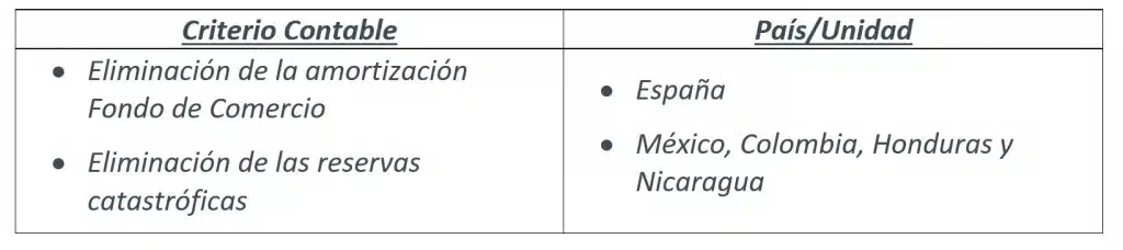 Durante el primer trimestre de 2023, no se han producido cambios en los aspectos metodológicos o criterios aplicables respecto a la información publicada en la memoria de las cuentas anuales consolidadas de Mapfre correspondientes al ejercicio 2022.[1]
