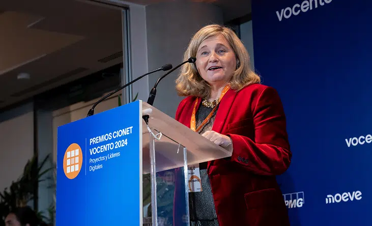 Malú Delicado, CIO de Mapfre Iberia, recogiendo el premio CIONET VOCENTO 2024 a mejor CIO del año.