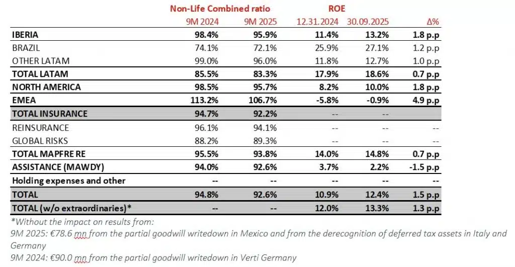 - Operating revenue, which includes premiums and service revenue, reaches €354 million, and the unit posts a net profit of €3 million, with a 1.4 p.p. improvement in the combined ratio to 92.6%.