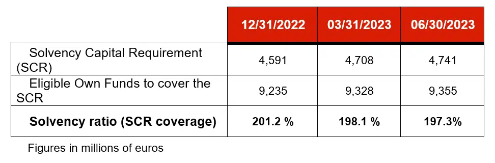 Mapfre Group Solvency II ratio stands at 197.3 percent at June 2023, including transitional measures. This ratio would be 188.8 percent excluding the effect of these measures, compared to 189.5 percent at the close of March 2023.