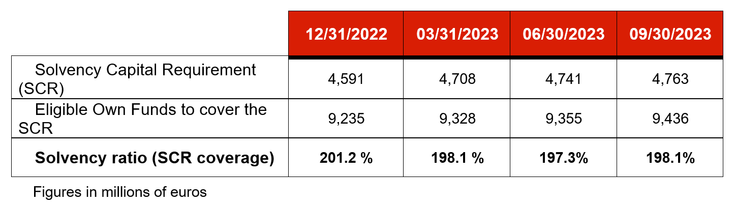 Mapfre Group’s Solvency II ratio stands at 198.1 percent at September 2023, including transitional measures. This ratio would be 189.7 percent excluding the effect of these measures, compared to 188.8 percent at the close of June 2023.