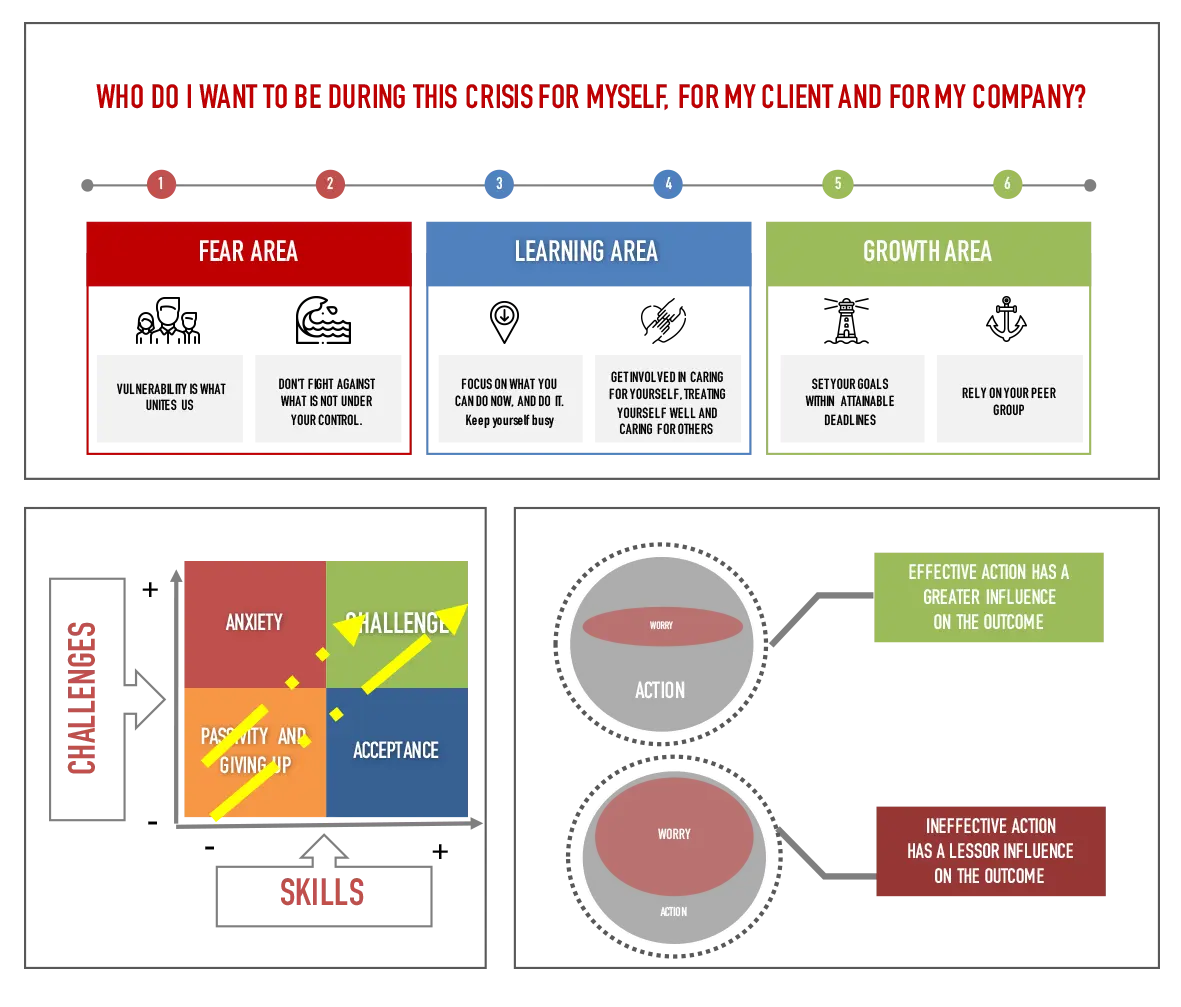 Even if we are determined to put all of the above into practice, when we get to work, we are often plagued by worries about possible threats: How will the world change after the crisis? How will it affect my loved ones and how will it affect me? Will I be able to cope with these changes?