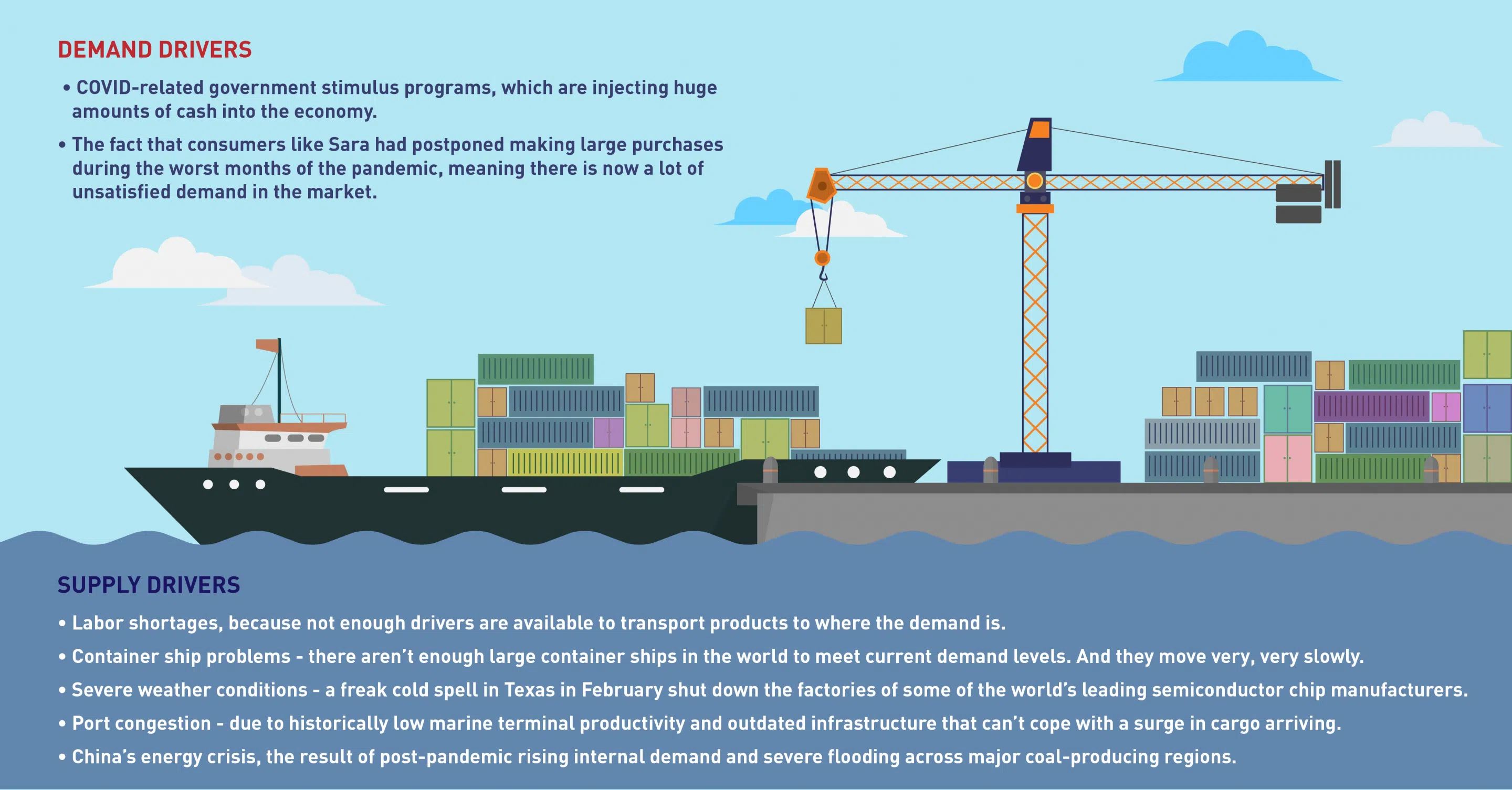 When you put all of these factors into a pot and mix them together, what you get is a situation where demand is structurally higher than supply, which in turn leads to delays, shortages and increased costs across every element of the global supply chain.