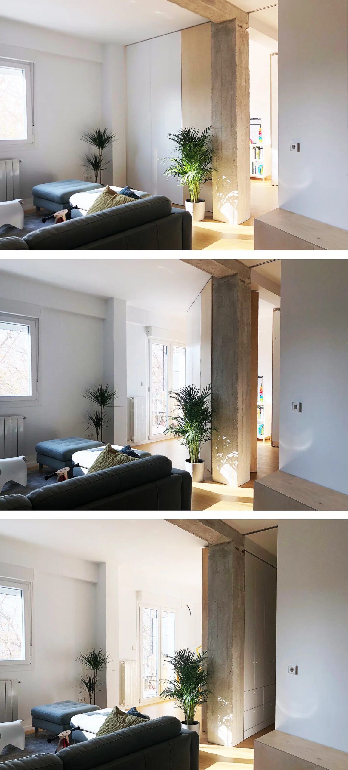 Carlos García and Begoña de Abajo: What we’ve already seen about flexibility in housing also applies to the current social reality. The housing stock we’ve inherited from last century continues to offer housing with utility rooms that can only be accessed through the kitchen, which, in many student apartments, have since been converted into the cheapest rooms. New ways of life require new organization in our homes, but these changes take time. Flexibility should no longer strive, or at least not only strive, for a home to accept the changes of a family that first grows with children and then shrinks when they leave home; it must also be able to adapt to other types of family or co-living situations. Does it make sense that homes still have bedrooms of different sizes? Perhaps houses will become a set of rooms that, with the exception of the bathroom and kitchen, which require their own specific installations, are more of a free space; while being more or less compartmentalized, they could be used in different ways to suit our needs. If all our rooms were more neutral, they could all function as a bedroom to sleep in, somewhere to eat, a space to relax or a place to work. Or they could be divided by matters unrelated to function, such as day and night areas, warm and cool areas, or big rooms and small rooms, for example.