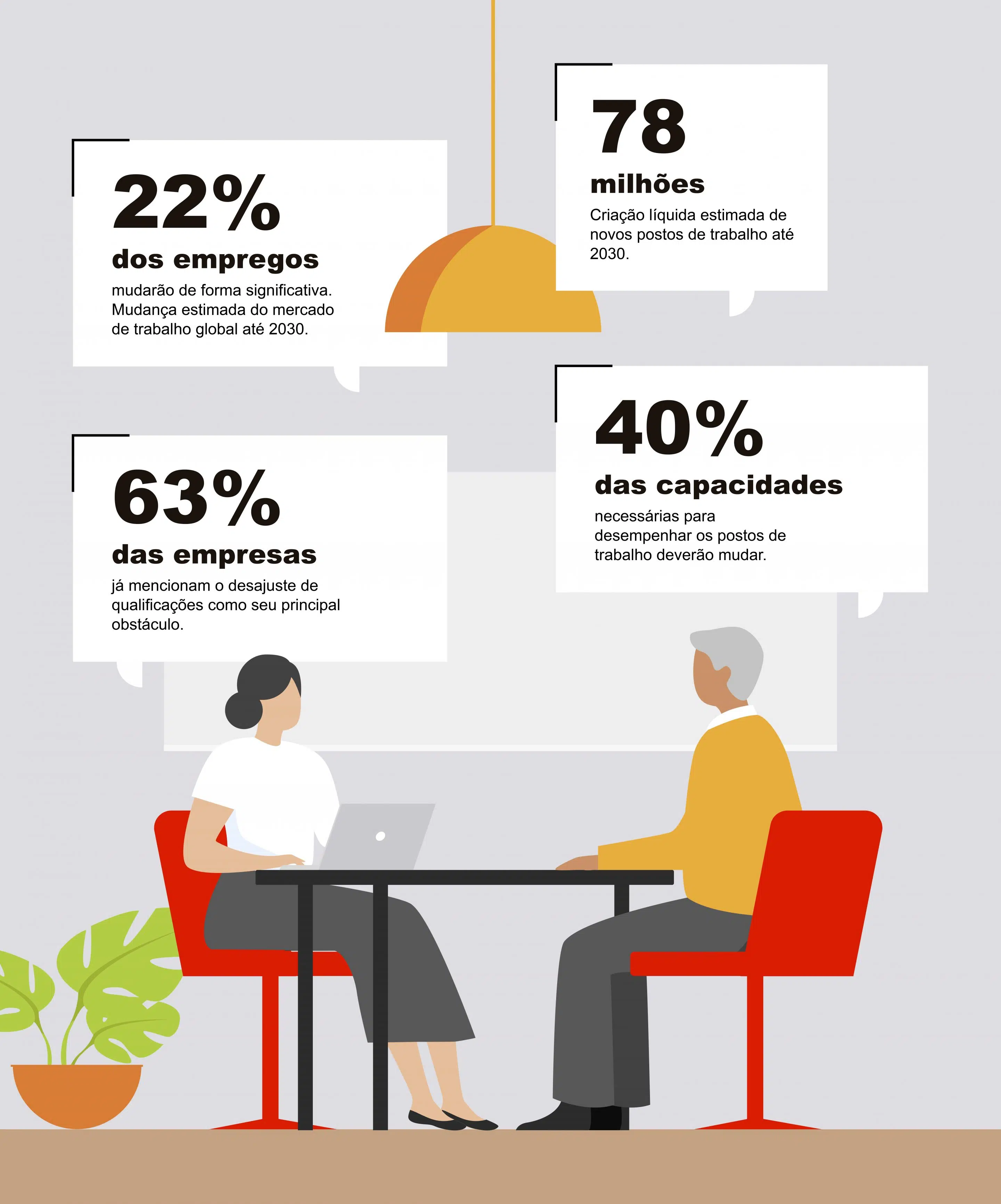 Estima-se que 22% dos empregos atuais mudarão significativamente até 2030