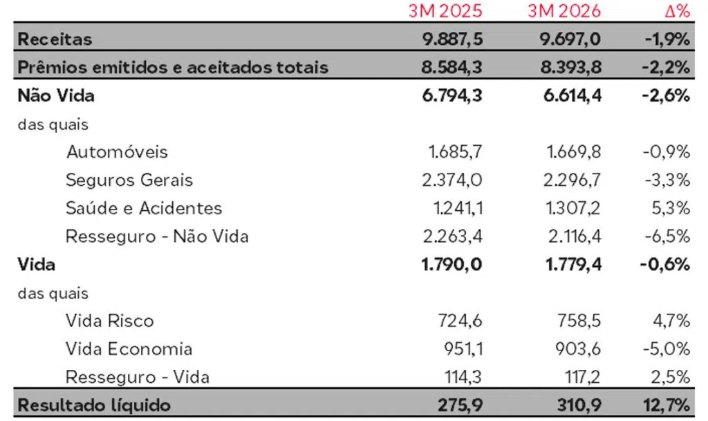 - Saúde e Acidentes progrediu para um notável 88,7% (-1,7 p.p.).