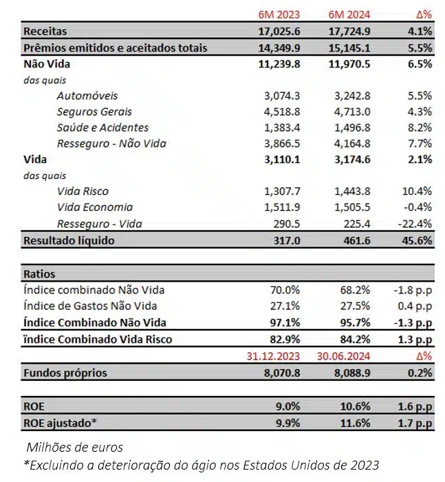 - As receitas, que incluem os prêmios e as receitas por serviços, alcançaram 253 milhões (+9,6%), registrando um lucro líquido de 3 milhões de euros.