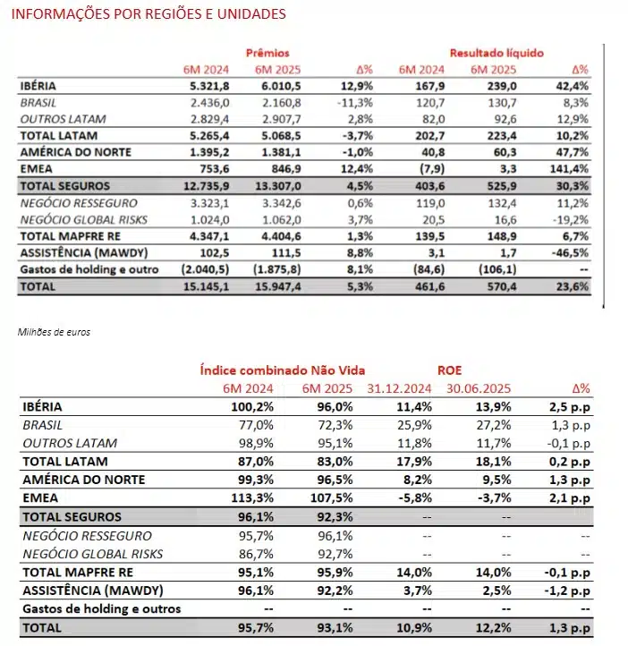 MAPFRE S.A. (MAPFRE) adverte que, salvo indicação contrária, os valores e indicadores contidos neste relatório de atividade são apresentados conforme os princípios contábeis vigentes em cada país (geralmente não aplicam as IFRS 17 & 9), homogeneizados para permitir comparação e agregação entre unidades e regiões. Para isso, foram aplicados determinados ajustes, sendo os mais relevantes os seguintes: a eliminação da amortização do ágio na Espanha e a eliminação das reservas catastróficas em alguns países da América Latina. O Grupo MAPFRE apresenta seus demonstrativos financeiros segundo as normas internacionais vigentes (IFRS). As definições e métodos de cálculo das medidas financeiras utilizadas neste relatório podem ser consultadas no seguinte link: https://www.mapfre.com/media/2025-06-alternative-performance-measures.pdf